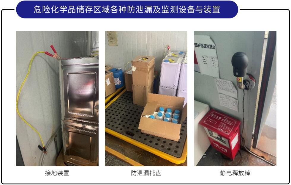 在危險化學品的儲存區域均已配備各種防護、監測及防泄漏設備,例如 : 溫度與濕度測量設備、有害氣體探測器、靜電釋放器、防爆電氣裝置,以及洗眼器等等。為保障員工的健康與安全,我們持續向員工傳達危險化學品危害信息和后續控制機制,并要求相關作業員工必須配戴公司所發放的個人防護裝備。